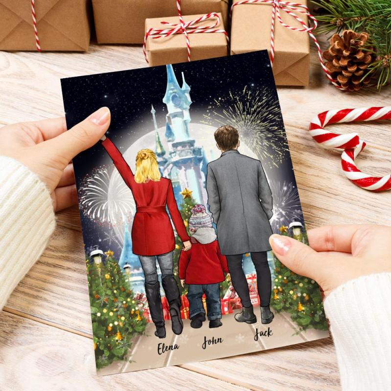 Home / Biglietto cartone animato di buon Natale con famiglia e amici