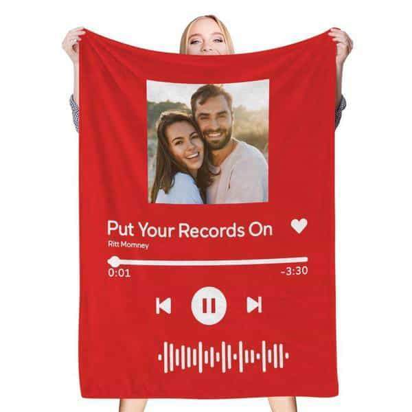 Coperta musicale con codice Spotify scansionabile personalizzata Coperte in pile con foto personalizzate Regalo per la festa della mamma bianca