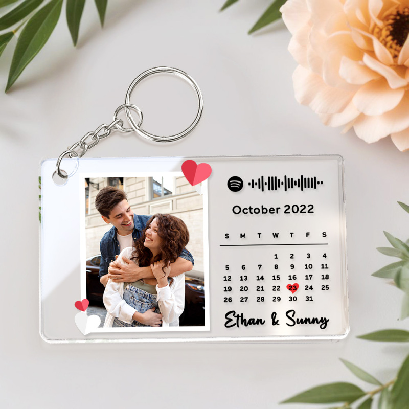 Portachiavi Con Calendario Fotografico Personalizzato In Acrilico Con Canzone Spotify, Regalo Di Anniversario Per Coppie