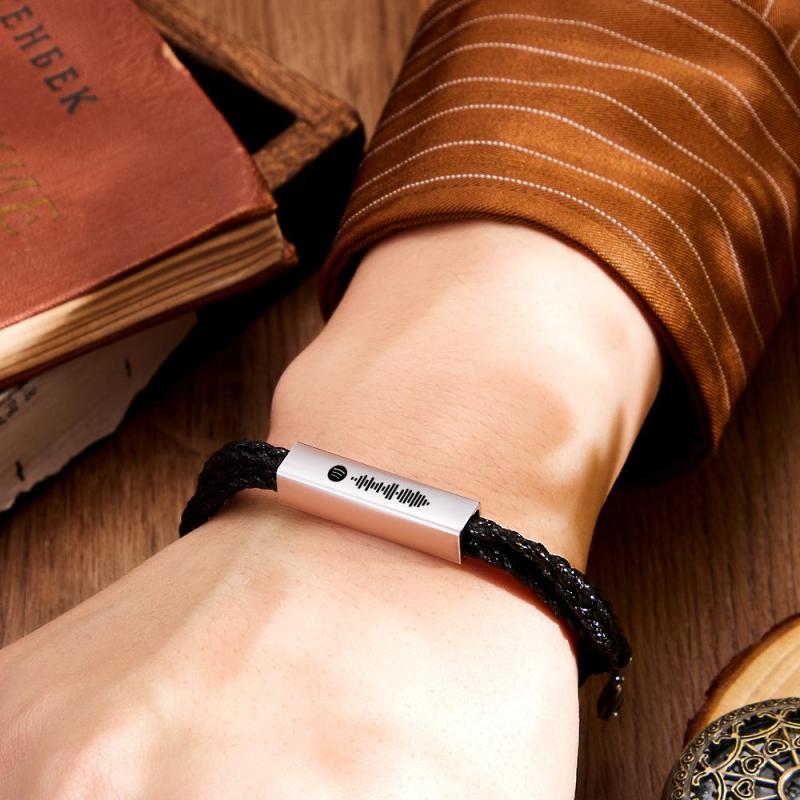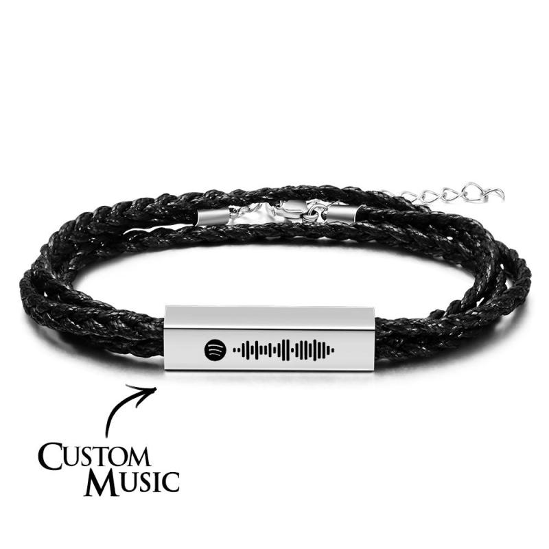 Bracciale In Pelle Spotify Personalizzato Bracciale Da Uomo Con Codice Musicale Inciso Personalizzato