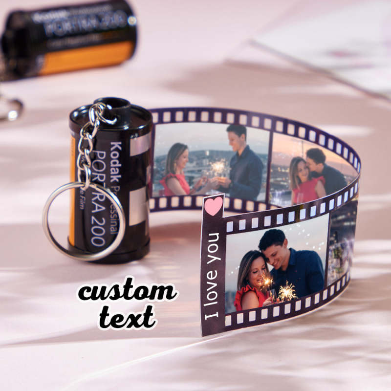 Portachiavi personalizzato con rotolo di foto di testo Portachiavi personalizzato con rotolo di pellicola