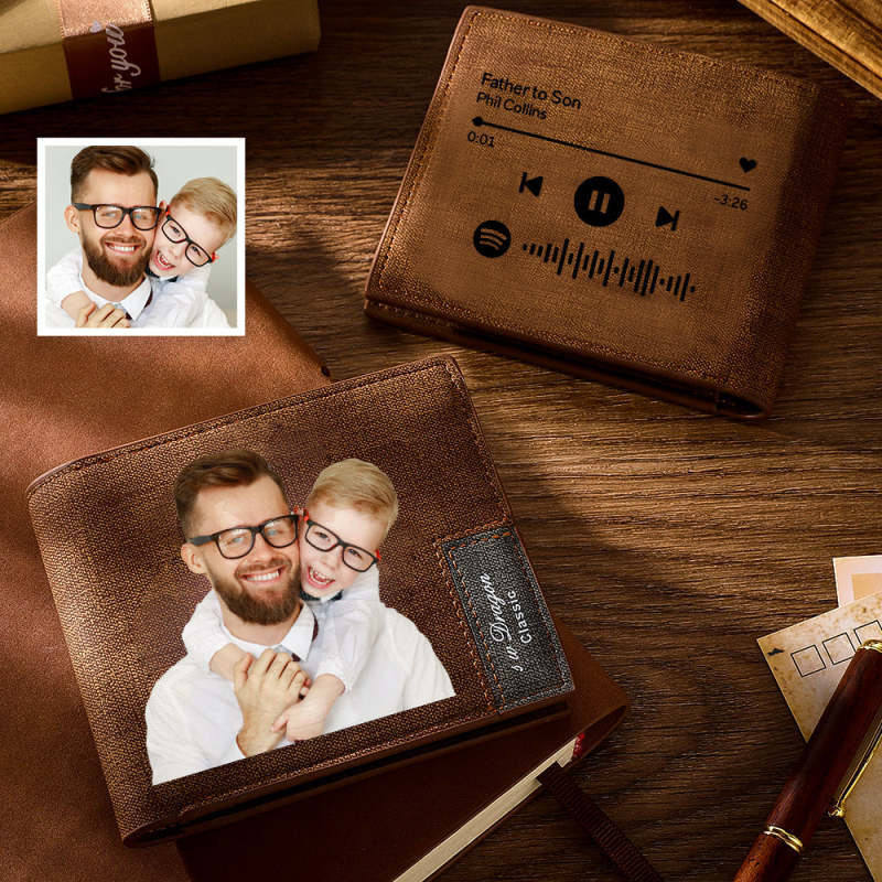 Regali Per La Festa Del Papà Portafoglio Con Codice Spotify Scansionabile Portafoglio Con Foto Incisa Regali Commemorativi Marrone Regali Per Neo-papà Dalla Moglie Al Padre
