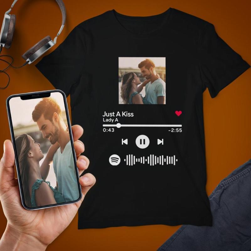 Home / T-shirt con codice Spotify scansionabile personalizzato con la tua foto